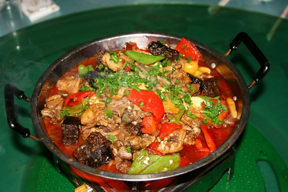 說到吃,鳳凰的苗家土雞、苗家臘肉、酸魚和血粑鴨是一定要嘗嘗的。苗家自釀的糯米酒每頓也要喝幾杯,雖然甜甜的,但后勁很大,要小心。臨走時可以從飯館買上10來斤酒和一些臘肉。早晨7~9點(diǎn)時,沿著東門內(nèi)的東正街往里走有個吃早飯的地方,生意火爆。店主人是一對夫婦,在門口賣米線、面、包子、煎餃、豬耳朵、豬頭肉、豬肘子、鹵蛋。