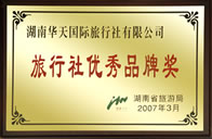 2007旅行社優(yōu)秀品牌獎(jiǎng) 湖南省旅游局 (2007.3)