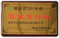 湖南省2004年度最佳旅行社 湖南省旅游局(2005.2)