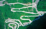 【通天大道】:被稱為通天大道的盤山公路共計99彎,似玉帶環(huán)繞,彎彎緊連,層層疊起,依山籍壁,直沖云霄,“天下第一公路奇觀”橫空出世,從索道上觀看公路,有如蜘蛛網(wǎng)一般密集的公路,垂直高差達千米左右。