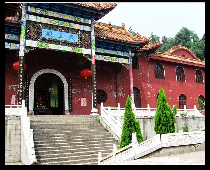 位于帝嚳祠正下方石獅子垅。占地30畝。整個寺廟為三級梯田式結(jié)構(gòu)。第一級為山門,第二級為天王殿,第三級為大雄寶殿(佛堂),總建筑面積4400平方米,其佛堂1000平方米,48根立標(biāo),負山而立。整個建筑莊嚴(yán)、雄偉、典雅。不僅能容納眾多的燒香拜佛者,而且比丘住房還能為100多位香客提供住宿?,F(xiàn)已成為雨母山的宗教圣地。