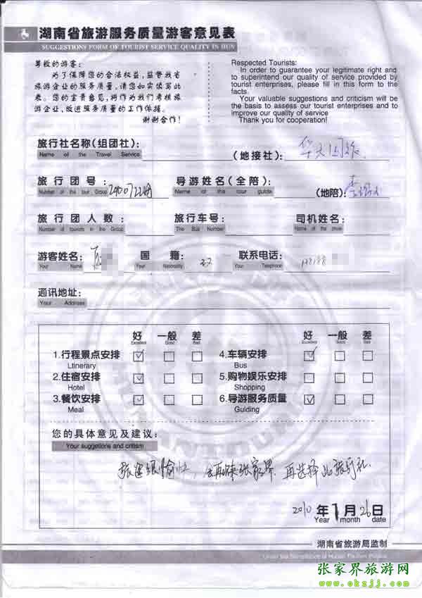 2010年7月26日上海夏小姐一行7位旅游質量反饋
