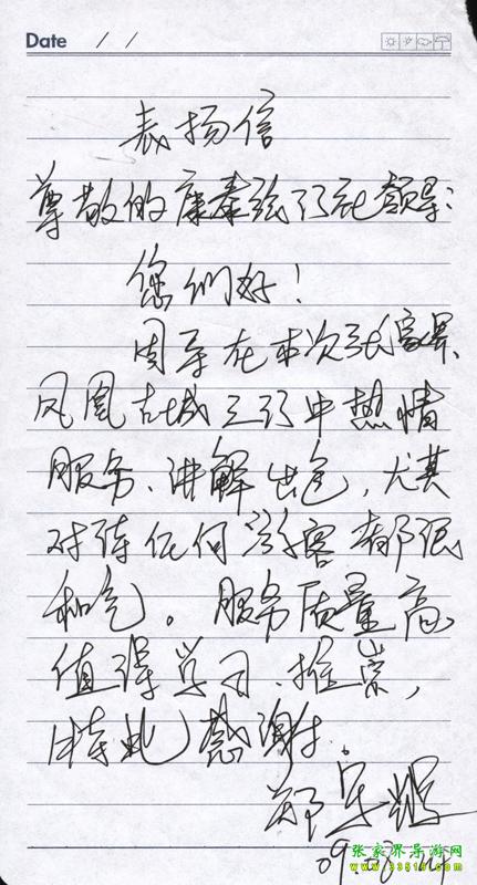 本次專列游客致張家界導游表揚信