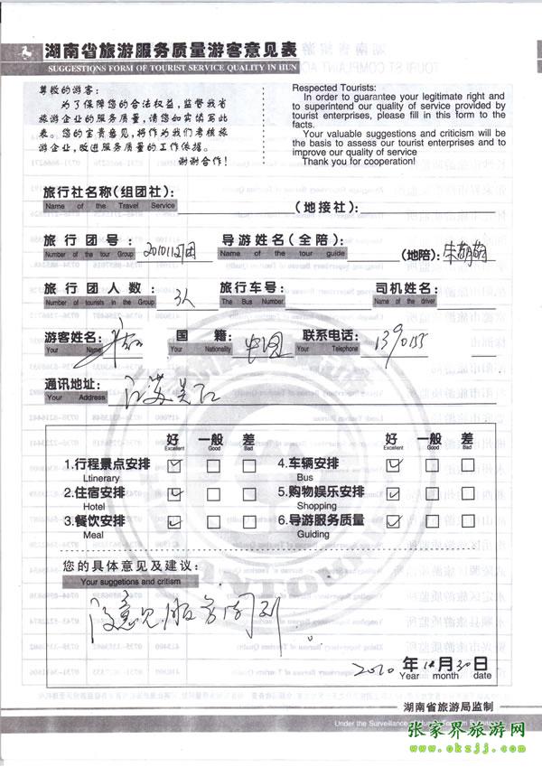 - 游客夏先生為表?yè)P(yáng)導(dǎo)游李姣姣寫來表?yè)P(yáng)信致我張家界... [14811]