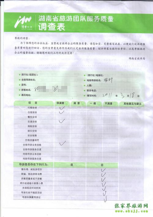 2011年3月18日何先生一行兩人旅游質(zhì)量反饋