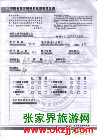 2010年7月4日岳陽鄒先生一行19位旅游質(zhì)量反饋