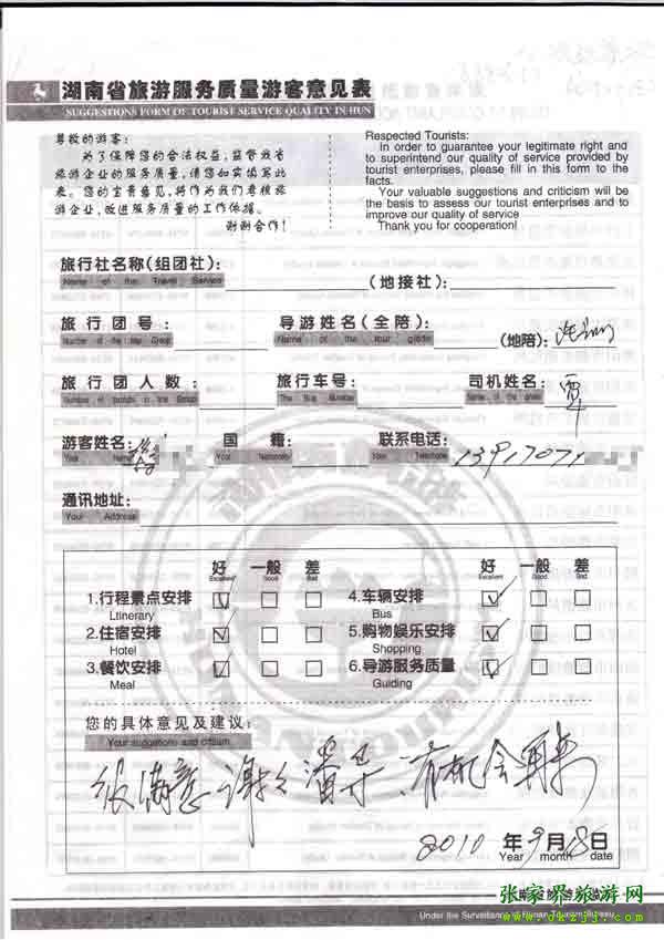 2010年9月18日華先生旅游質(zhì)量反饋:導游很好,有機會再來