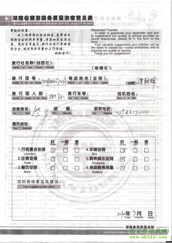 - 2011年10月26日張小姐一行18人旅游質(zhì)量反饋 [10482]