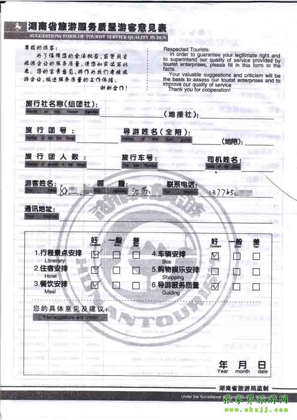 2010年11月1日孫先生旅游質(zhì)量反饋