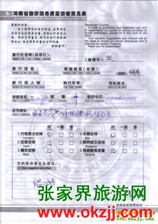 - 游客夏先生為表?yè)P(yáng)導(dǎo)游李姣姣寫(xiě)來(lái)表?yè)P(yáng)信致我張家界... [14811]