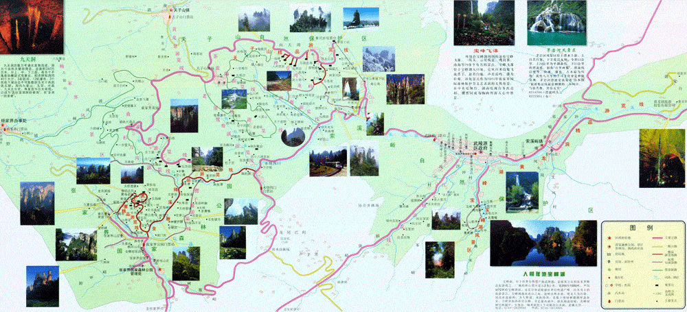 張家界國家森林公園位于武陵源的西南端,與索溪峪自然風(fēng)景區(qū)、天子山自然風(fēng)景區(qū)妣鄰,總面積7.2萬畝,年平均氣溫16度,森林覆蓋率為97%,木本植物達(dá)98科517種之多,比整個(gè)歐洲的樹種多一倍,裸子植物物種占世界一半。張家界國家森林公園以峰稱奇、以水顯幽、以林見秀,主要景點(diǎn)有金鞭溪、黃獅寨等。境內(nèi)群峰拔地而起如巨筍傲指蒼穹,金鞭溪夾岸斷巖絕壁,野滕古樹、好一派原始風(fēng)采,溪水如條條彩帶鋪展于千山萬壑之間。