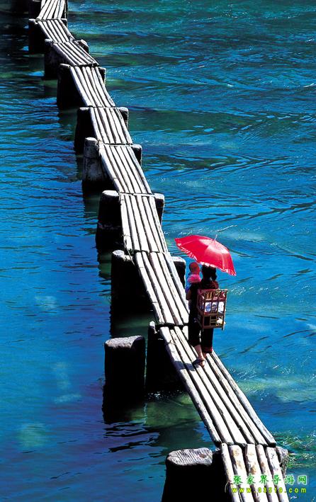 還有那鳳凰人在江邊用木板洗衣服時的情形也是難忘的。小住幾天,都會發(fā)現(xiàn)從一早到一晚都有當(dāng)?shù)氐木用裨阢吷舷匆路麄內(nèi)巳硕寄靡豢焯刂颇景?,用來敲打衣服,特別在早上八、九點的時候,江兩岸的邊上、木橋的兩邊橋墩下,都蹲滿許多的人,當(dāng)然婦女、老人居多,在那“啪啪”的洗衣服,此起彼伏,甚有節(jié)奏。時而有游人用照相機(jī)對其拍照,可他們似乎也習(xí)以為常了,毫不理會,特別在傍晚還會有脫得精光的小孩在岸邊的洗衣人周圍玩水,奇怪的是,他們并不害羞,也不害怕游人的鏡頭和目光,我想大城市里的孩子就少了這份的無機(jī)心的單純了。在這里生活無疑自然舒適淳樸的,我想他們的生活習(xí)慣從來就是如此的,沒有因我們游客的到來而有太大該變。