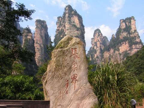 上午 乘車前往世界峰林奇觀--山風(fēng)景區(qū)(可選擇乘索道單程52元/人.次下天子山),在天子山,則可俯視大千世界,您會生出“山上無山我獨尊”的無限豪情;天子山有四大奇觀:峰林、云海、日出、冬雪,一幅幅雄偉壯觀、奇特迷人的景象,相信會讓大家大飽眼福而流連忘返。我們將前往游覽天子閣、西海石林、御筆峰、仙女獻(xiàn)花、賀龍公園、石船出海、采藥老人、賀龍銅像等著名景點。