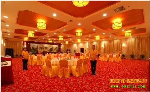 武陵源江漢山莊酒店餐廳菜肴中西兼?zhèn)洌⒁韵娌藶橹?,兼顧南北風(fēng)味,設(shè)有多個(gè)風(fēng)格各異的豪華包廂,可同時(shí)容納500人就餐。